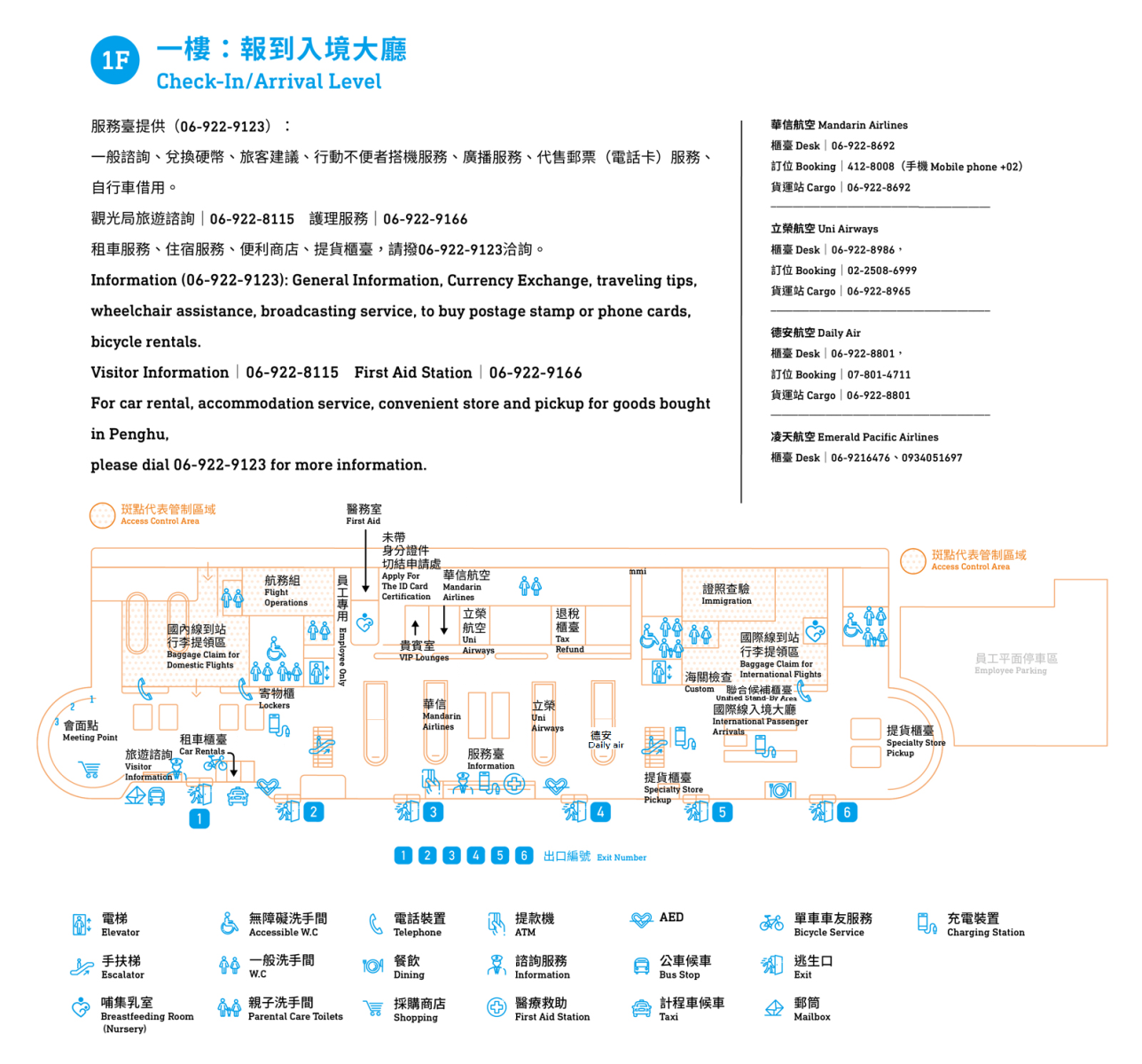 ‧服務台服務時間: 每日07:00-末班機起飛 ‧服務台電話:(06)922-9123